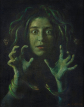 The menacing snakes in her hair rise up and accompany Medusa's staring gaze. With her wild, exorbitant eyes, she prepares to petrify the beholder. Her aged hands with contracted fingers accompany this gaze in her desire to captivate us and cast her fatal spell. We also note the presence of two snakes around Medusa's wrists, which seem to handcuff her, the better to restrain her in her condition. Her raised hands also evoke a way of proving her innocence, since this sinister power is not of her own volition but a fatality imposed on her: both executioner and victim, she implores with her gaze while bewitching the viewer.