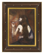 Our painting is unquestionably the masterpiece of Jules-Abel Faivre. We can feel the influence of his master, Jules Lefebvre, in the signature. The delicacy of the model’s features and her long hair remind those of Sappho, the Greek poetess of the Antiquity. The painter Dante-Gabriel Rossetti made a similar work. Here, Abel Faivre shows with precision the perfect proportions of the young woman. The purple background of the canvas, mixed with a deep blue veil, highlights the sensuality of this painting.