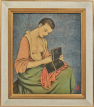 Realised in 1925, this elegant female figure fully belongs to Walter Sauer’s corpus of the interwar period, a time when the artist developed a pictorial language of great formal purity, nourished by a subtle dialogue with classical tradition. The young woman, depicted seated and leaning toward a small black casket—likely a lacquered jewelry box highlighted with delicate gold lines—is captured in a quiet, introspective attitude that lends the scene an almost meditative quality.