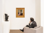 Unlike the romantic scenes of the previous century, de Jonghe subtly suggests emotion without dramatising it. The composition is based on a skilful balance between the figure and her luxurious surroundings. On the left, the marble fireplace adorned with a large gilded Napoleon III clock, a Japanese-style vase and an Uchiwa fan illustrates the contemporary taste for decorative arts and exoticism.