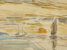 Produced in 1893, this work reflects the painter's work of the 1890s. During this period, he suggested the movement and undulation of the waves with rapid strokes. True to his characteristic chromatic range of greys and blue-greys, the "King of Skies", as Camille Corot called him, managed to capture all the mystery of the port of Deauville and the unique atmosphere of Normandy.