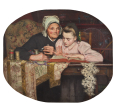 But here, the woman and her daughter do not appear to be posing, as is sometimes the case in some of the painter's paintings. Instead, they are captured on the spot, as if we were entering the intimacy of their home and becoming spectators of the moment.