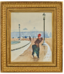 Loin de toute anecdote théâtrale, l’artiste privilégie l’observation directe et la spontanéité. Cette figure féminine, saisie dans l’instant d’une promenade, incarne l’élégance moderne telle que Béraud aime à la représenter : active, urbaine, et insérée dans le flux incessant d’une capitale toujours en mouvement.