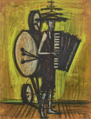 La personnalité de Bernard Buffet se révèle à la fin des années 40 avec ses premiers personnages anguleux ses dessins incisif où on lit le pathétique et l’angoisse qui le classeront dans la mouvance expressionniste misérabiliste de Francis Gruber et de Georges Rouault.