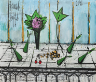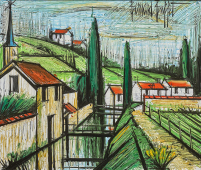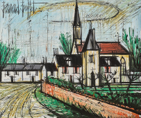 Bernard Buffet, qualifié de géni du XXe siècle a suscité l'intérêt et la passion du public dans le monde entier en décrivant l'anxiété et le vide de l'après-guerre, par une utilisation toute personnelle des lignes noires et des couleurs sobres.