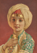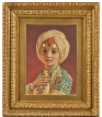 Lors de son premier séjour en Orient, qu’il entreprend en 1858 et n'achève qu’en 1860, Carl Haag s'attacha à l’observation et à l’étude minutieuse des paysages et des costumes. Notre délicat portrait de jeune princesse, dans tous les détails et la finesse de la représentation des étoffes, témoigne de cette observation méticuleuse du costume. Le peintre choisit de représenter son modèle de trois-quart, son doux regard clair posé sur le spectateur tandis que sa main droite est délicatement posée sur la riche parure qui orne son cou. Les pampilles d'or qui tombent sur son front captent la lumière et enchantent le regard.Les accords de verts, de rouges et de bruns visibles dans notre aquarelle témoignent de la qualité de coloriste de Haag, qui développait des techniques nouvelles pour obtenir les couleurs souhaitées, en superposant différentes couches de lavis et en grattant ensuite le surplus. Le fond subtilement traité en dégradé pour concentrer l’éclairage sur le visage de la jeune princesse, et la lumière de cette aquarelle illustrent la grande maîtrise de cette technique par l'artiste. Cette admirable maîtrise technique sera reconnue de tous puisqu'il sera élu membre de la Royal Watercolor Society dès 1853.
