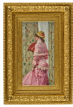 Également connu sous le titre "La Femme en rose", cette élégante jeune femme est Nathalie, la sœur du peintre. D'une touche virtuose et sensible, le peintre a su capter toute une gamme de matière pour mettre en valeur la toilette de son modèle : taffetas, dentelles, éventail, bijoux et chapeau. Chaque étoffe est parfaitement saisie, la silhouette se détachant dans une embrasure de fenêtre habillée de rideaux fleuris.