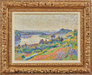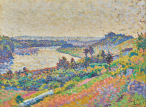 Invité par son ami Signac à Herblay pour peindre directement sur le motif (fig. 1), l’artiste se place sur les hauteurs pour embrasser d’un regard panoramique la vallée de la Seine, dont le large cours serpente au cœur d’un paysage vallonné et lumineux.