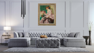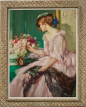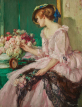 Cette toile de grand format qui illustre la couverture du livre consacré à l'artiste est une œuvre majeure du peintre. Il y réunit ses talents de peintre de fleurs et de portraitiste. Avec toute la retenue imposée par l'art du portrait mondain, il nous fait partager un moment de grâce et de douceur. Le coloriste brillant utilise de légers empâtements pour souligner les plissées de la robe de son modèle et le velouté des pétales de roses fraîchement cueillies.