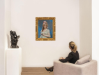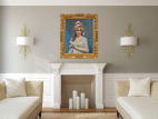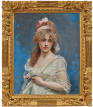 Dans notre portrait, il accentue la fraîcheur de son modèle à la peau laiteuse en la faisant poser les cheveux lachés, subtilement retenus par un ravissant ruban de satin rose. Quelques fleurs à la main, elle a le regard absent d'une jeune amoureuse, dont les pensées sont entièrement absorbées par son amour naissant.