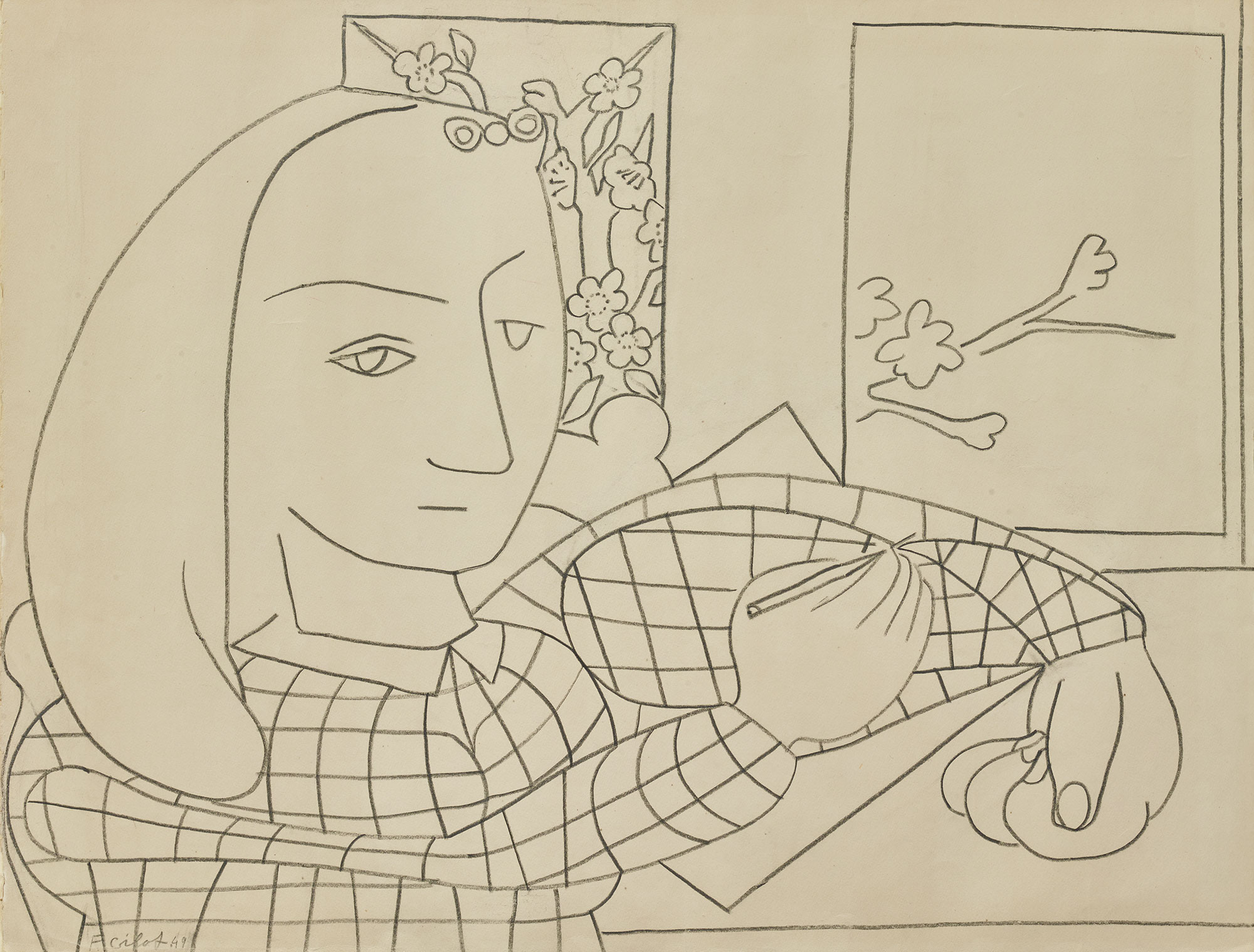Crayon gras sur papier, signé et daté F. Gilot 49 en bas à gauche